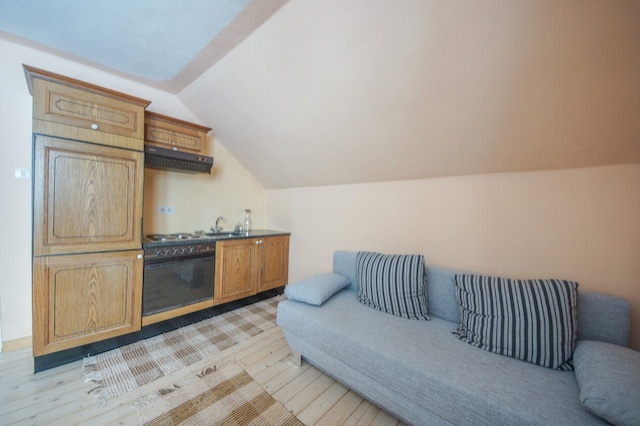 Die Wohnung liegt im zweiten Stock des Haupthauses und bietet auf 48 m2 Wohnfläche alles was Sie für den Urlaub brauchen. Sie hat ein Doppelschlafzimmer mit Doppelbett, eine Wohnküche und ein Bad mit Wanne und WC. In der Wohnküche befindet sich ein ausziehbares Sofa für nochmals 2 Personen (€5/Nacht/Person). Zur Wohnung gehört ein Balkon – hier können Sie abends sitzen und der untergehenden Sonne über den Bergen zusehen. Oder Sie setzen sich in den gemütlichen Gastgarten und bei kühlerem Wetter in die kuschelige Stube vor den Kamin.