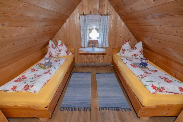 Diese Hütte mieten Sie am Maltaberg in Österreich. Sie liegt in bezaubernder Lage oberhalb der Nebelgrenze - hier können Sie vor der Almhütte sitzen und auf das Nebelmeer im Tal blicken! Sie hat im Parterre eine Küche (Eckbank, Holzherd, der auch zur Warmwasseraufbereitung dient), eine Wohnstube (Kachelofen, Eckbank, Couch), eine Dusche und ein WC. In der Küche ist alles notwendige Geschirr vorhanden. Im ersten Stock der Hütte gibt es zwei Schlafzimmer mit je zwei Betten. Licht kommt aus der Solarzelle (keine Steckdosen vorhanden). Nebenan befindet sich ein weiteres Gebäude, welches nur zur Unterbringung der Geräte dient. Oberhalb gibt es noch ein kleines Holzhaus als Holzlager.